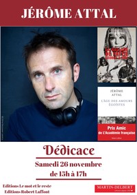 Il dédicacera "L'âge des amours égoïstes" aux éditions Robert Laffont et "La ballade de Pattie, George & Eric" aux éditions Le mot et le reste, ses deux derniers ouvrages.