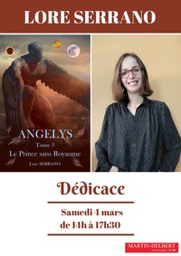 Nous donnons rendez-vous aux amateurs de fantastique, de fantasy, de bitlit, et bien sûr aux curieux, samedi 4 mars de 14h à 17h30 à la librairie pour la dédicace de Lore Serrano auteure de la saga Angelys.