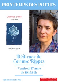 Corinne Rippes dédicacera son nouveau recueil de poèmes "Quelque chose." aux éditions du Petit Pois vendredi 17 mars de 16h à 19h.